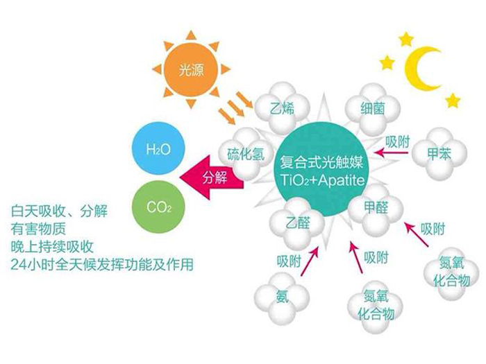 光觸媒也是目前常見的用于凈化室內空氣的方法之一,光觸媒除甲醛利用納米二氧化鈦等與甲醛等有害氣體發生氧化分解,把甲醛等有害氣體分解成二氧化碳和水,從而達到改善室內空氣的目的!